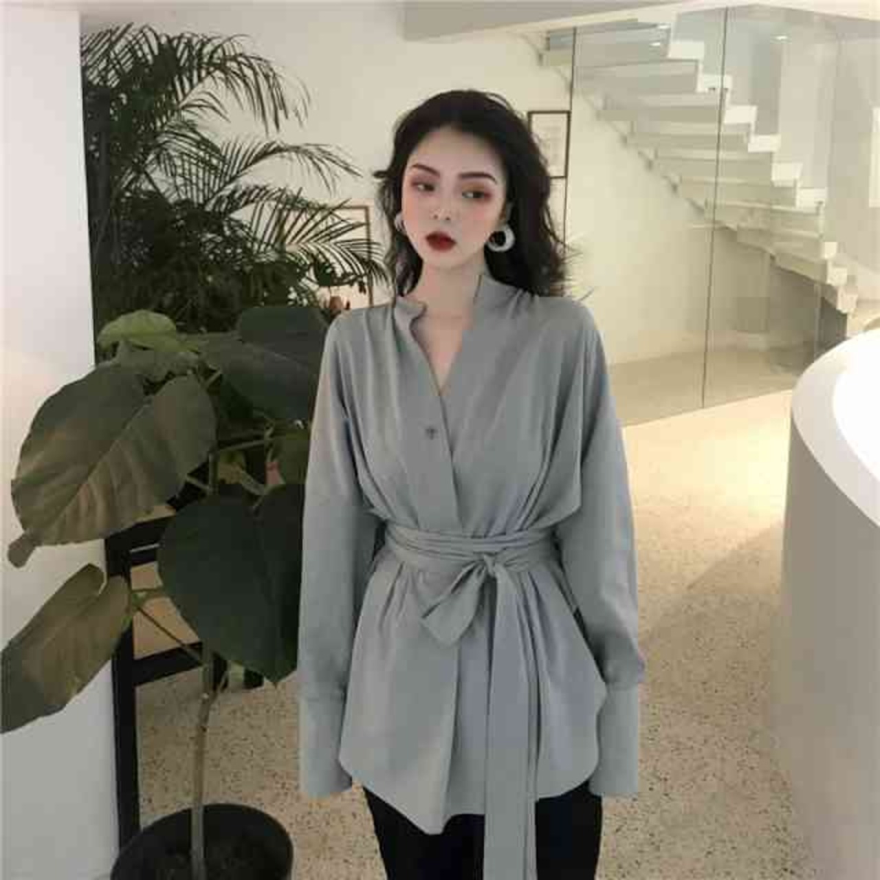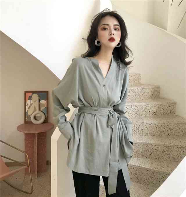 ウエストリボン付きでトレンドの大きめシルエットシャツです。