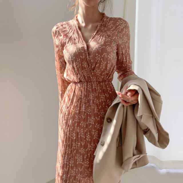 ワンピース レディース 膝丈 プリーツワンピース カジュアル 長袖 大きいサイズ ワンピ Vネック 花柄 シフォンワンピース ロング キレイめ ナチュラル お洒落 可愛い SNS映え 新作 おすすめ 大人可愛い エレガント お出かけ デート OL