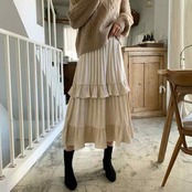 プリーツフリルティアード×ミモレ丈スカート