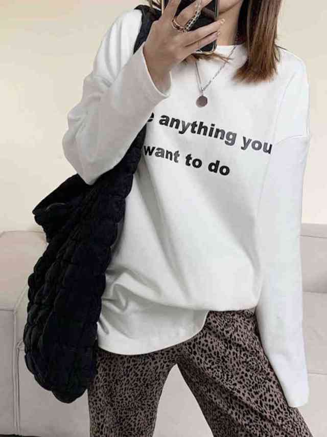 Tシャツ ロゴ レディース カットソー ティーシャツ ビッグ ゆったり オーバーサイズ 長袖 ロングTシャツ ロンT 大きいサイズ ゆるい ロゴプリント カジュアル 可愛い お洒落 シンプル 普段使い デート お出かけ 体型カバー 10 20 30