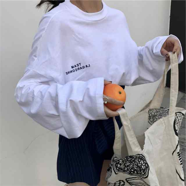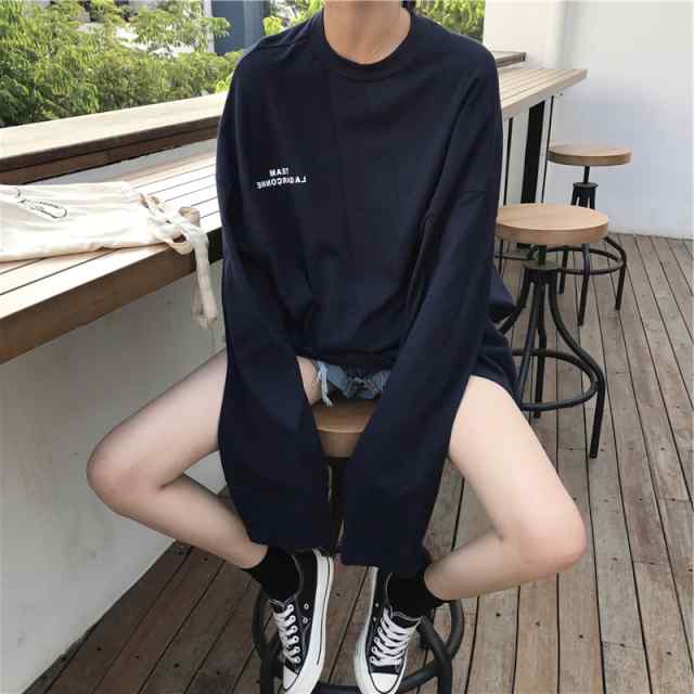 Tシャツ レディース カットソー ティーシャツ ビッグ ゆったり オーバーサイズ 長袖 ロングTシャツ 大きいサイズ ラウンドネック ロゴ入り バットスリーブ カジュアル シンプル クール 大人可愛い 体型カバー 他とは被らない 人気 韓国