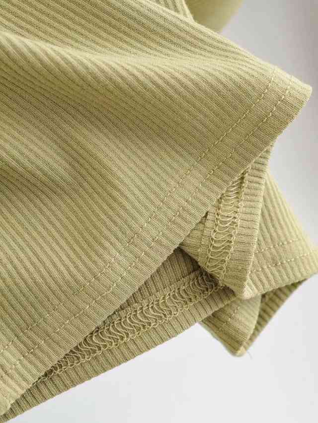 ショート丈でへそ出しコーデや、ハイウエストパンツと合わせたコーデで、脚長効果が狙えるアイテムです。