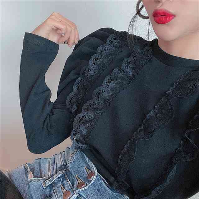 カットソー レディース Tシャツ 長袖 ロングTシャツ ロンT 大きいサイズ カジュアル 可愛い 大人女子 パフスリーブ 綺麗 シンプル 普段使い お洒落 キレイめ 個性的 レース フリル 上品 エレガント フェミニン 甘め キュート お呼ばれ