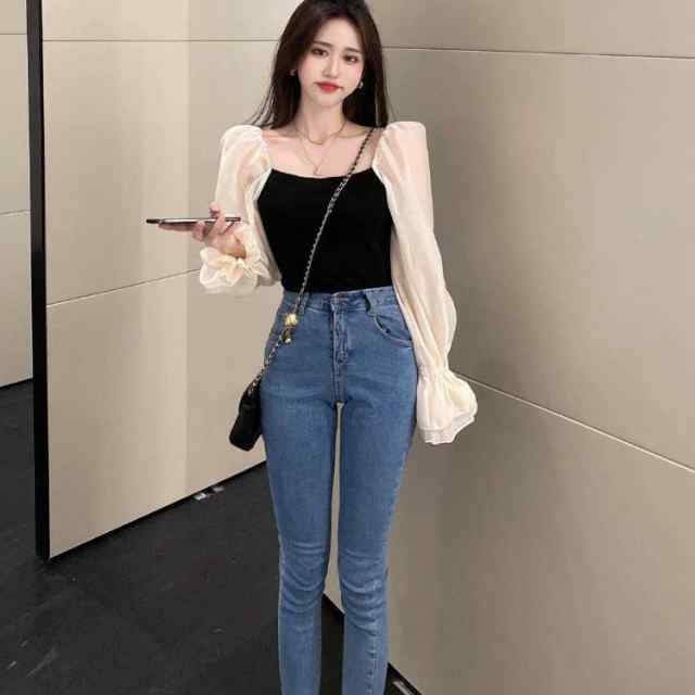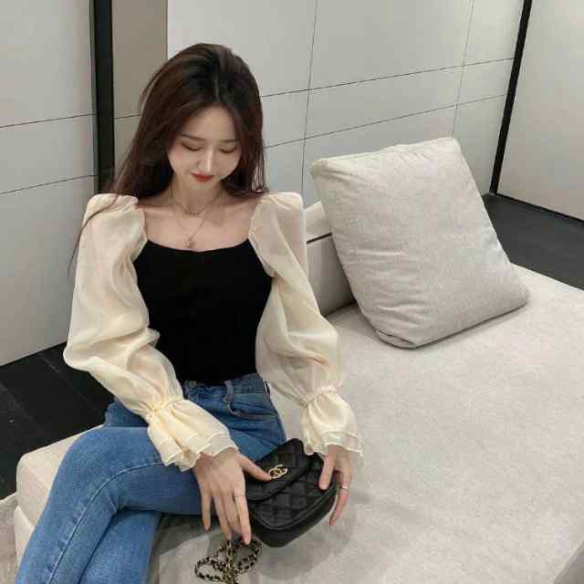 袖のシアーデザインが韓国デザインで可愛い!デニムと相性抜群です。