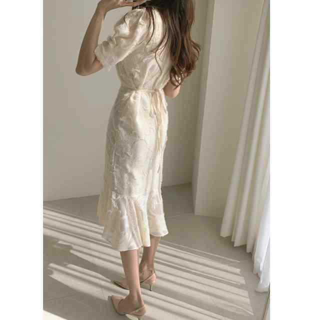 パーティードレス 結婚式 ドレス ワンピース レディース 二次会 お呼ばれ パーティー 大きいサイズ ミディアム フィッシュテール 半袖 パフスリーブ フォーマル エレガント 上品 クラシック クラシカル モノトーン 清楚 デート セレブ