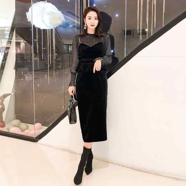 シースルートップス×ベロアワンピースのセットドレスが登場!