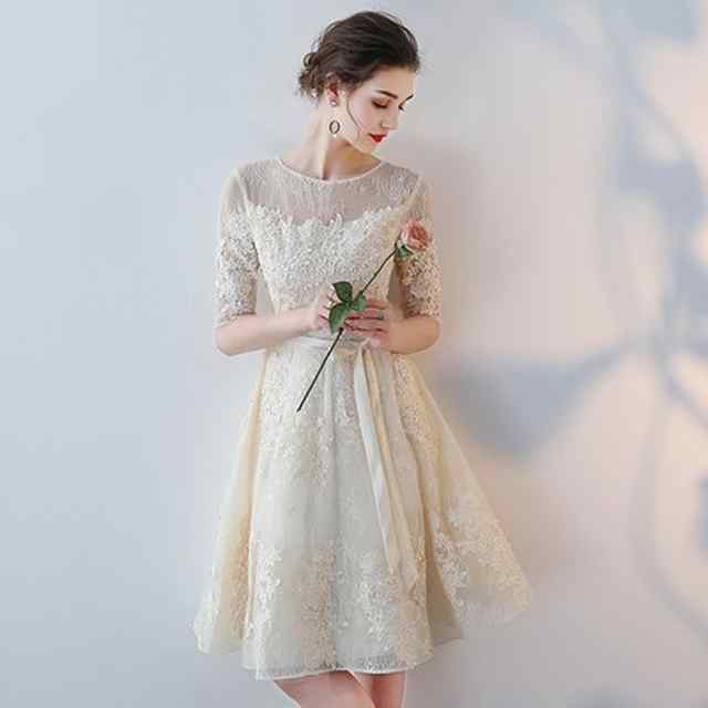 パーティードレス 結婚式 ドレス ワンピース レディース 二次会 お呼ばれ パーティー 大きいサイズ ミディアム 膝丈 七分袖 シースルー フレアスカート フォーマル エレガント 上品 クラシック クラシカル 清楚 デート セレブ 10 20 30
